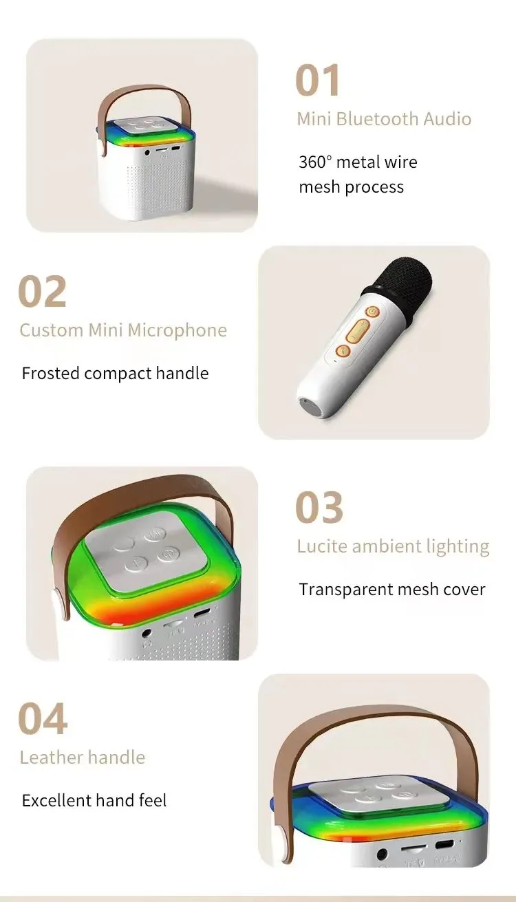 Features2:K12 Dual Microphone Karaoke Bluetooth Speaker RGB Light Two 5W Speakers Sound Subwoofer Boombox Support Multiple Input Modes