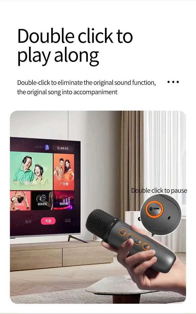4.Enjoy the comfort brought by good sound quality, innovative wireless duet function One speaker, two microphones, easy chorus