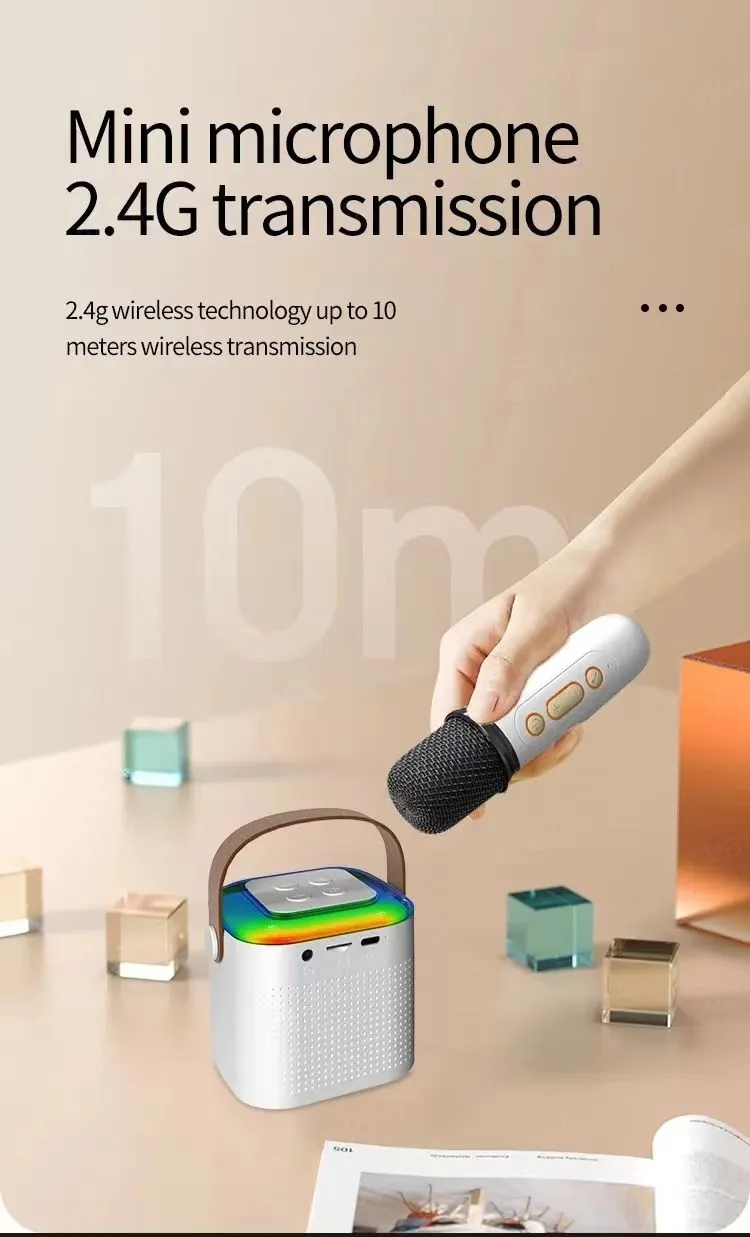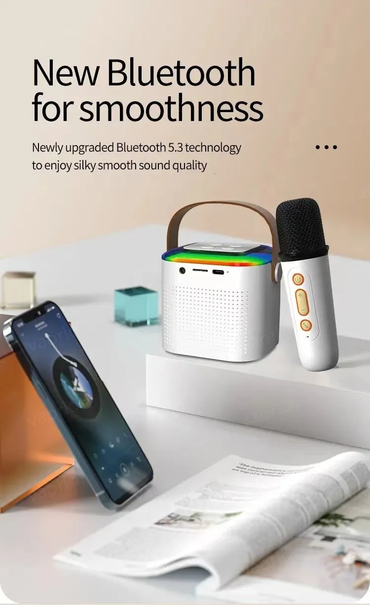Features6:Portable Bluetooth Speaker with 1-2 Wireless Microphone New Mic Karaoke Machine Music Player for Adults and Kid Subwoofer System