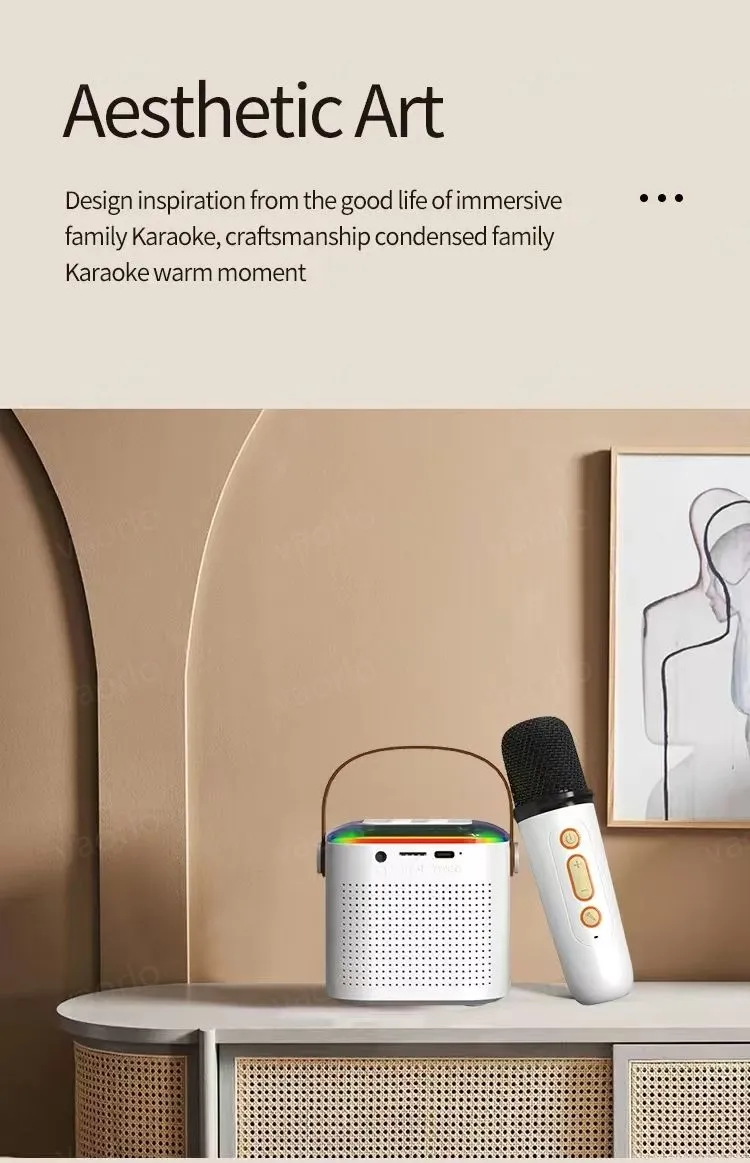 ●Enjoy the convenience brought by great sound quality, innovative wireless duet function One speaker, two microphones, easy blending.
